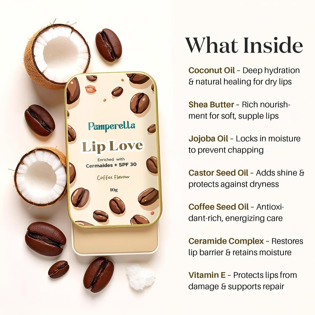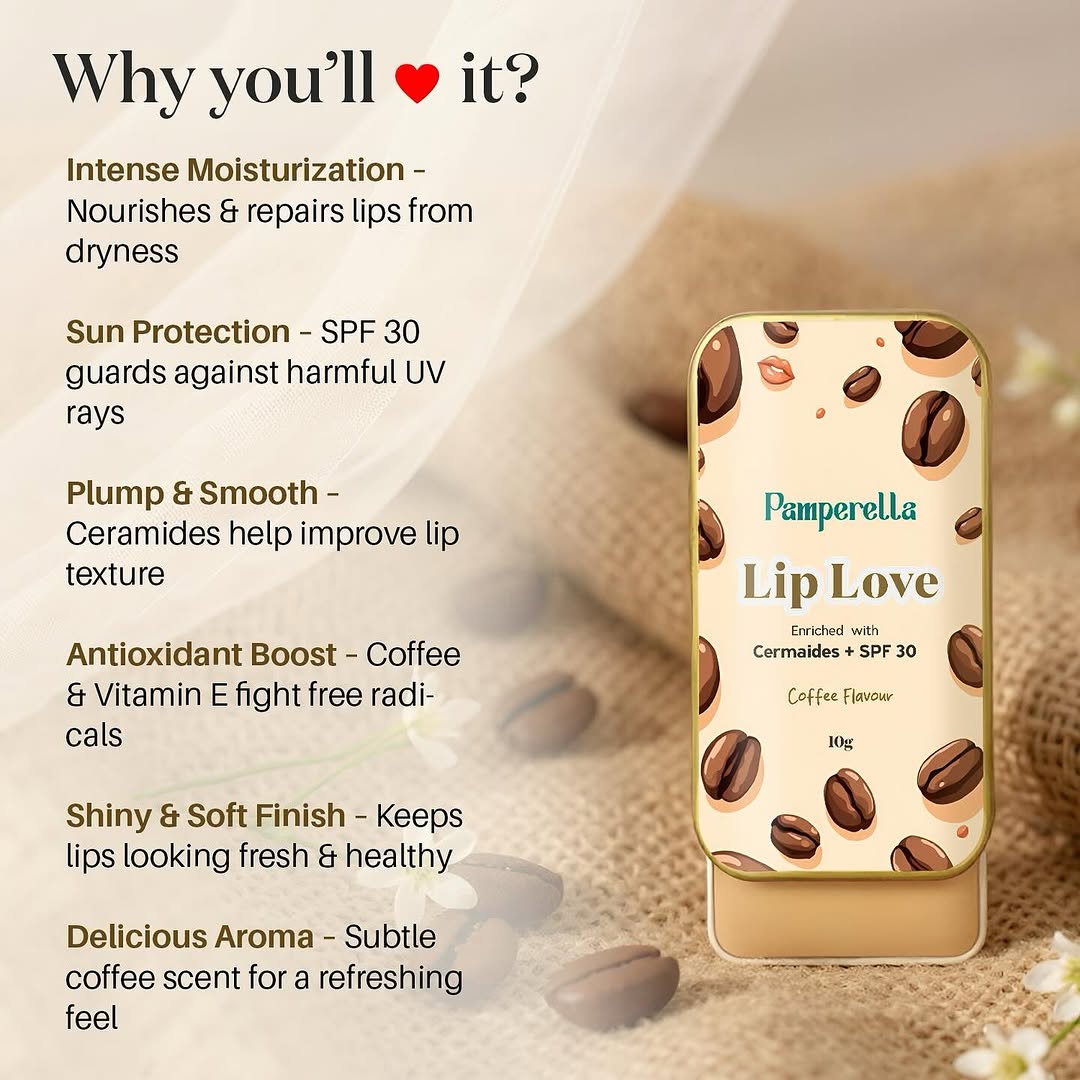 Wake up your lips with the energizing care of Pamperella Lip Love – Coffee Flavour.